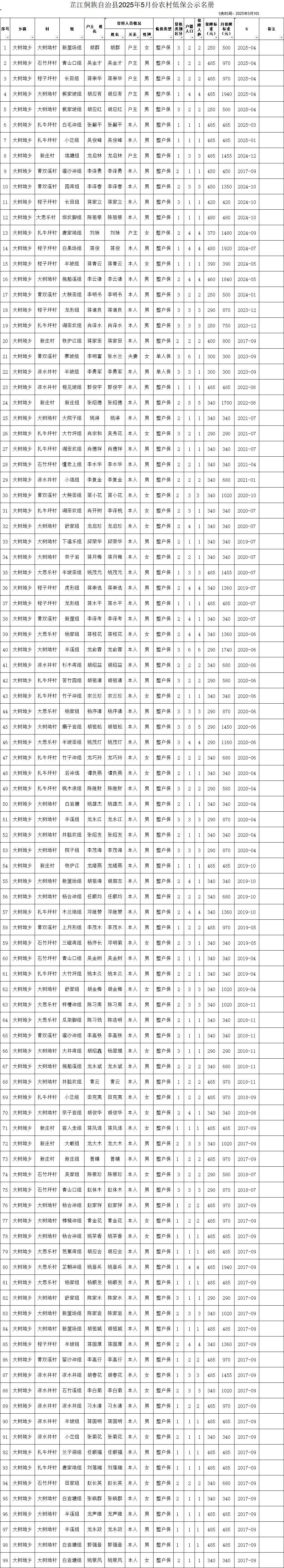 【社会救助】大树坳乡2025年5月份农村低保发放人员名单