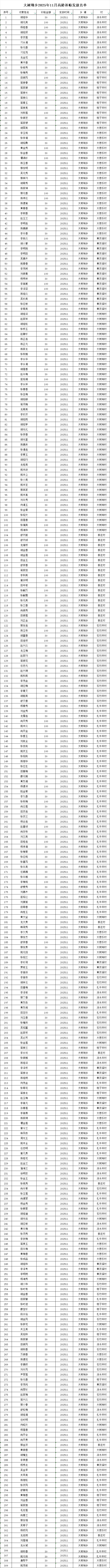 【社会保险】大树坳乡2025年11月高龄补贴发放名单