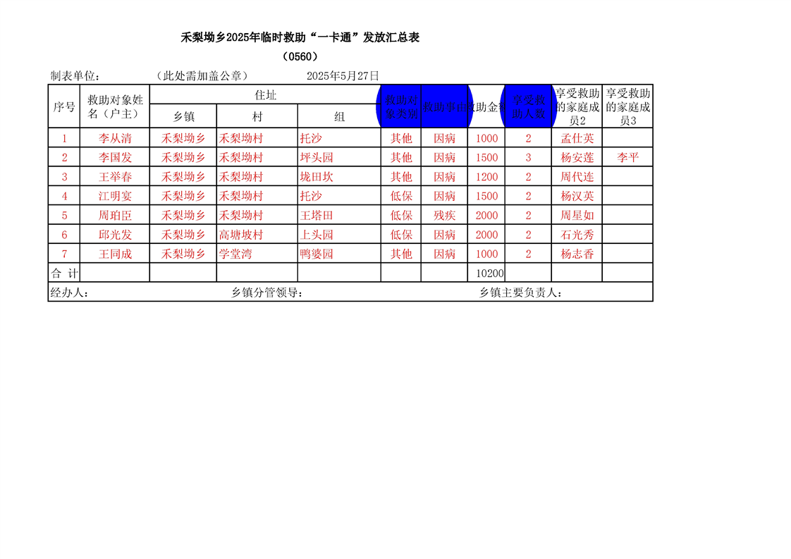 芷江县禾梨坳乡2025年6月临时救助发放名单