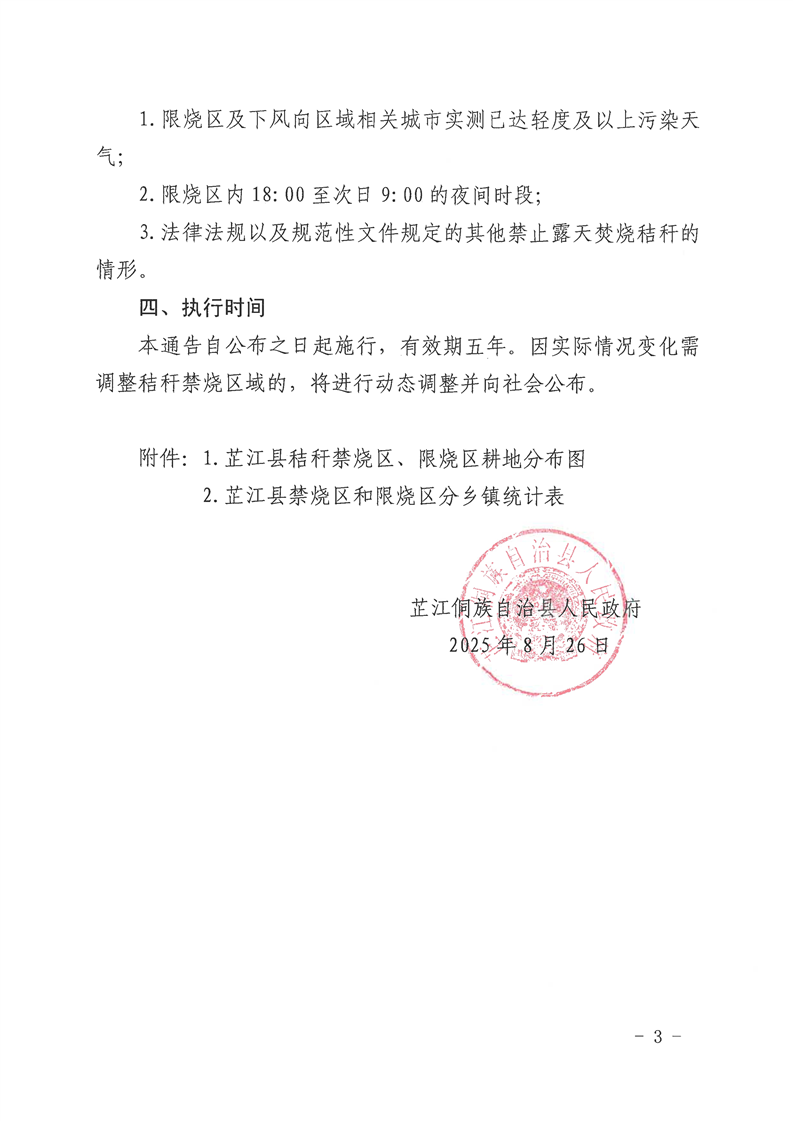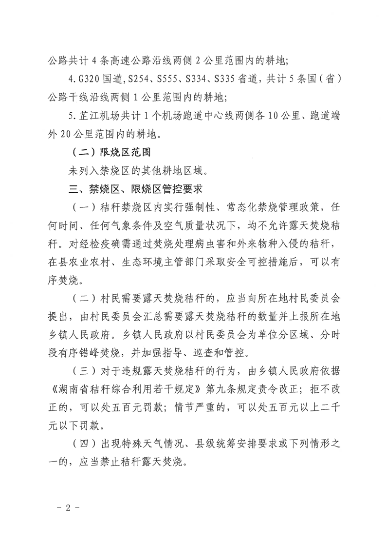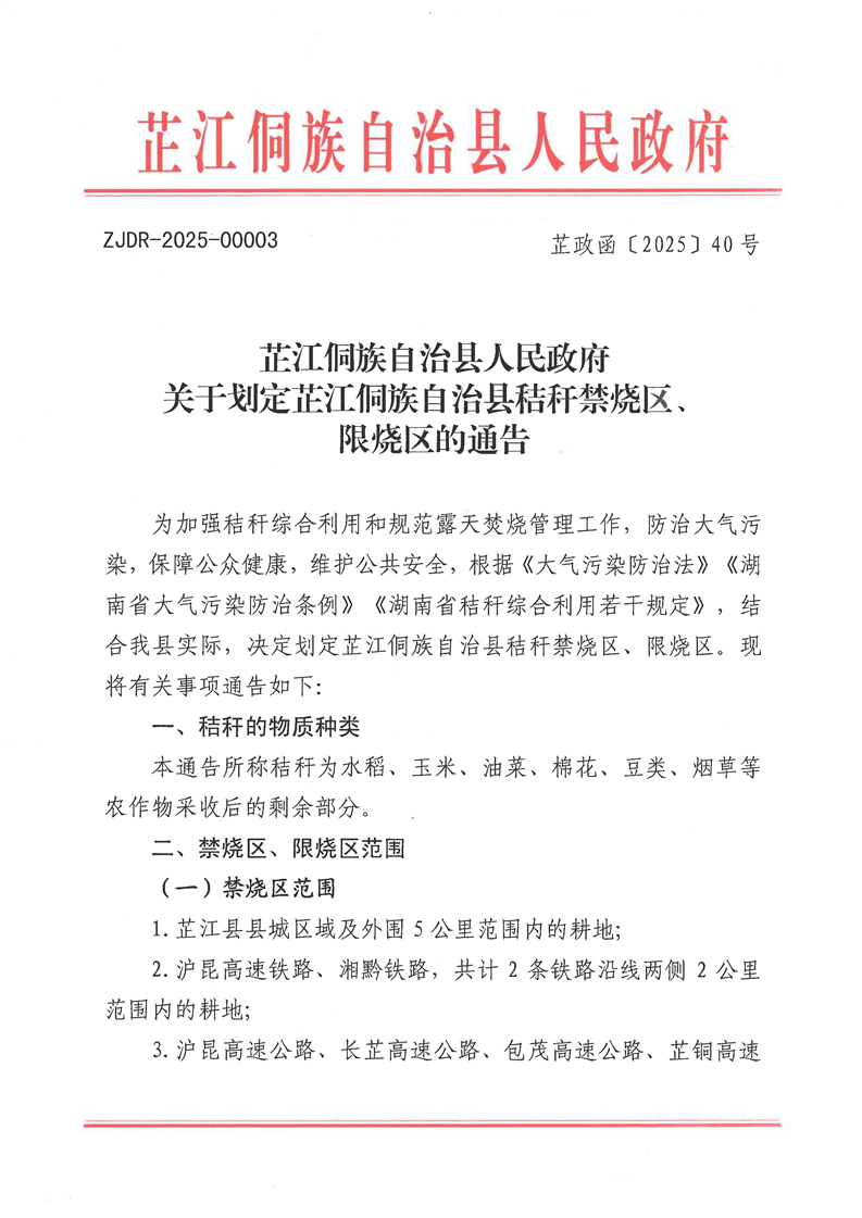 芷江侗族自治县人民政府关于划定芷江侗族自治县秸秆禁烧区、限烧区的通告